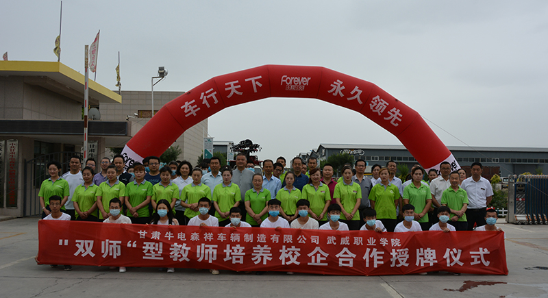 2020年7月9日上午9時,武威職業(yè)學院和甘肅牛電森祥車輛制造有限公司校企合作授牌儀式在牛電森祥廠區(qū)舉行。武威職業(yè)學院黨委副書記翟存祥同志,武威職業(yè)學院黨委委員、副院長張開禮、王守云同志,涼州區(qū)工業(yè)園區(qū)黨工委書記張鑫以及區(qū)科技局、工信局分管領導出席了授牌儀式。
