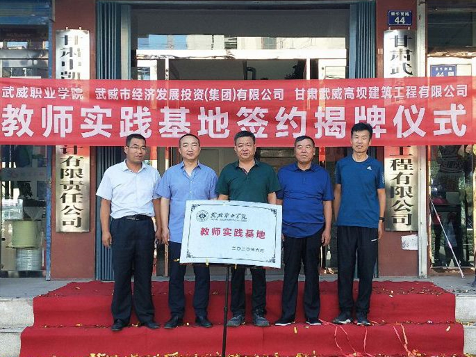 2020年8月9日,學院聯(lián)合武威市經濟發(fā)展(集團)有限公司、甘肅武威高壩建筑工程有限公司,在甘肅武威高壩建筑工程有限公司大樓前舉行武威職業(yè)學院教師實踐基地簽約揭牌儀式。學院黨委書記、院長趙明,基建處負責人賈龍,建筑工程系副主任蔡濟眾,黨建負責人孫潤元;武威市經濟發(fā)展(集團)有限公司董事長崔國斌、副董事長董英,甘肅武威高壩建筑工程有限公司總經理周勝年出席簽約揭牌儀式。