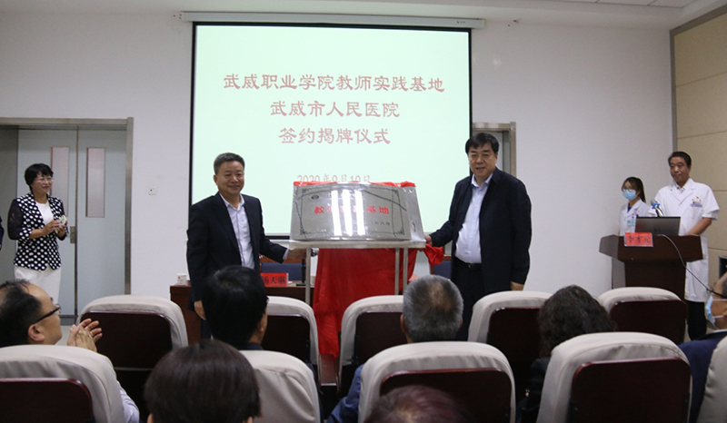 2020年9月10日上午,武威職業(yè)學院與武威市人民醫(yī)院在武威市人民醫(yī)院舉行教師實踐基地簽約暨揭牌儀式。學院黨委書記、院長趙明、副院長王永緒,武威市人民醫(yī)院黨委書記楊天琳、副書記、院長王世中出席。學院部分職能科室負責人、醫(yī)學類專業(yè)教師代表及武威市人民醫(yī)院行政科室代表參加了儀式。武威市人民醫(yī)院黨委委員、副院長李才元主持儀式。