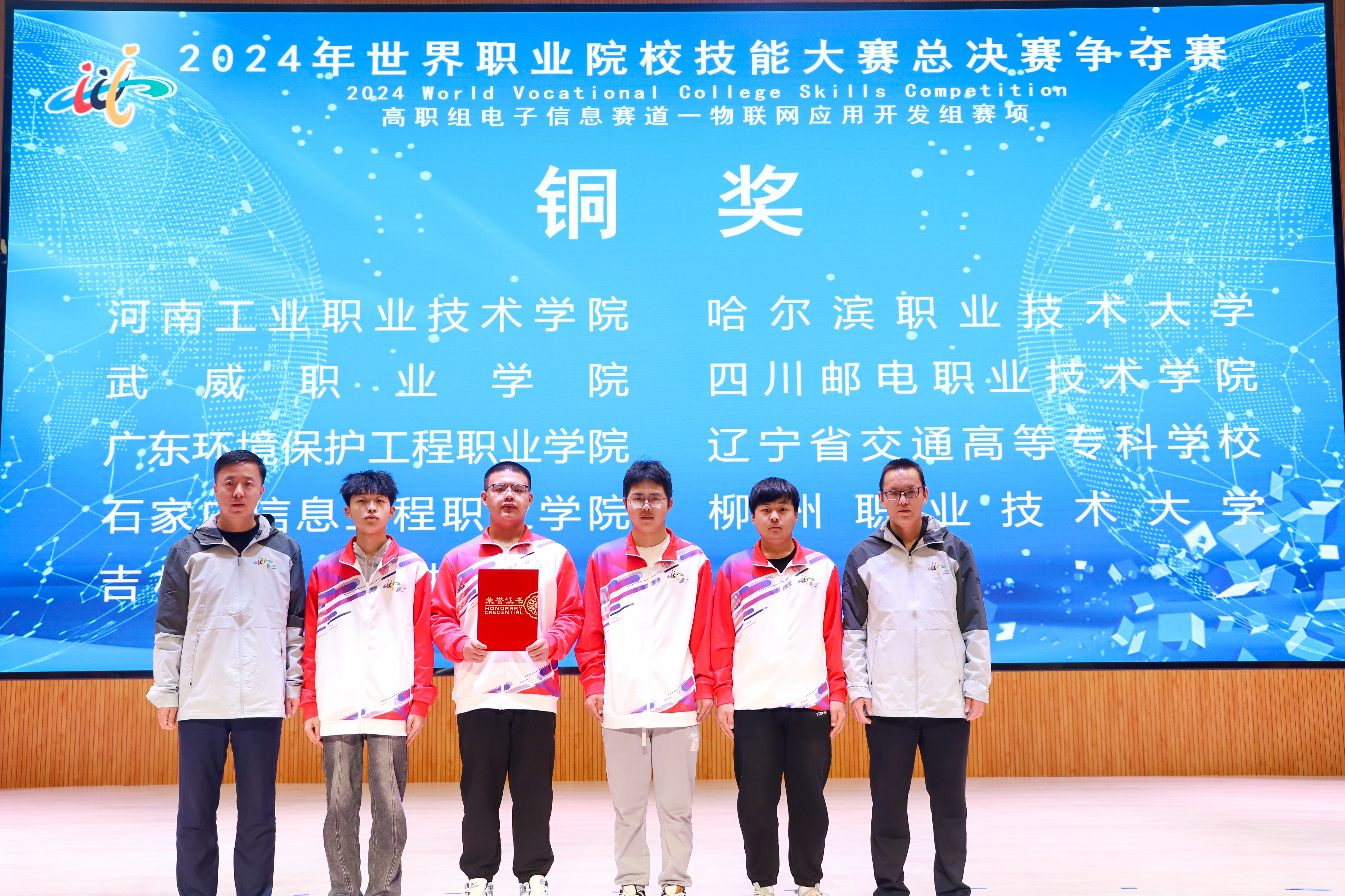 學(xué)校在2024年世界職業(yè)院校技能大賽爭(zhēng)奪賽高職組電子信息賽道物聯(lián)網(wǎng)應(yīng)用開(kāi)發(fā)賽項(xiàng)中榮獲銅獎(jiǎng)