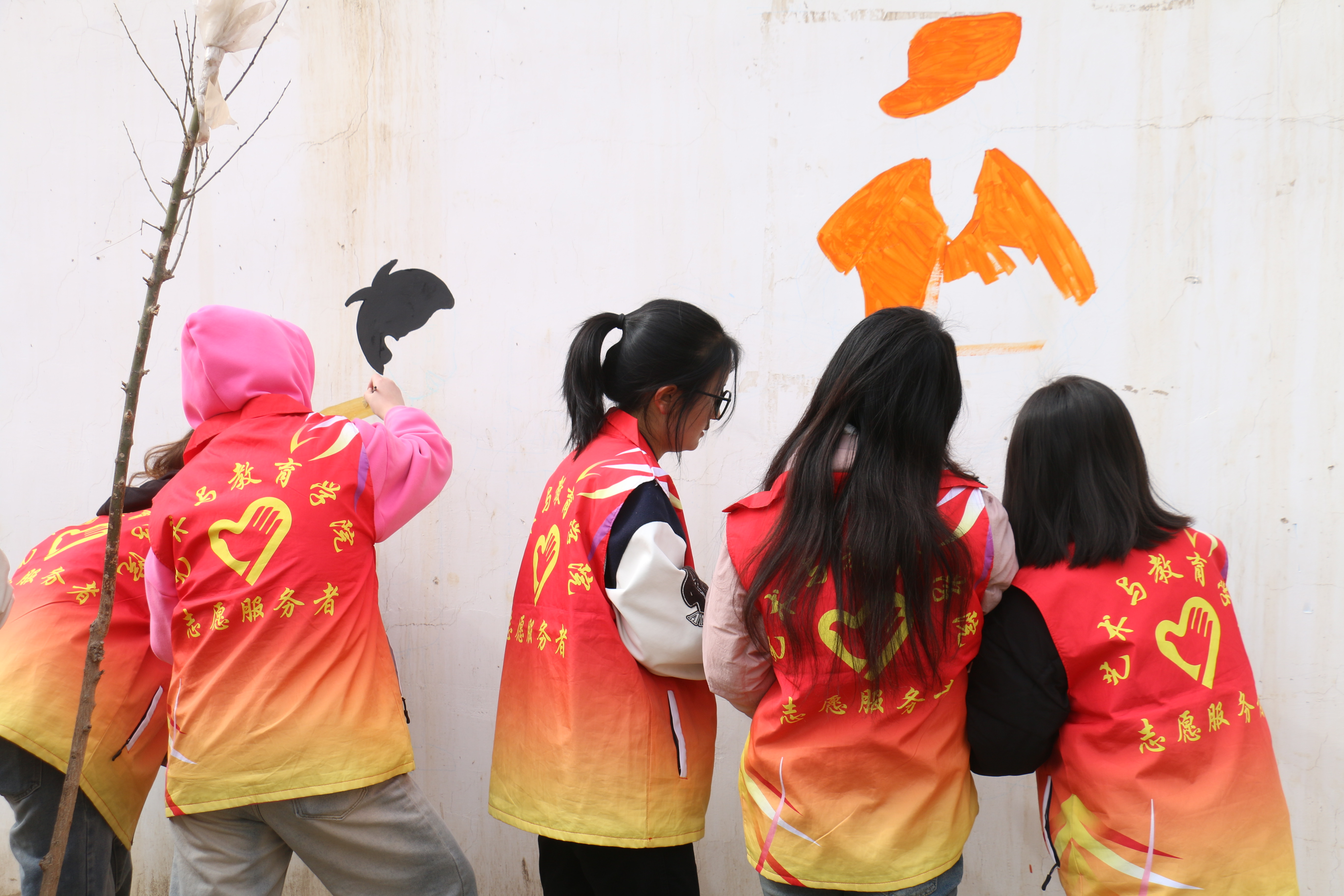 在涼州區(qū)富鑫源社區(qū),學(xué)前教育專業(yè)20余名學(xué)生化身“社區(qū)美育師”,與甘肅十二元素傳媒有限公司設(shè)計(jì)師共同完成了“鄰里和諧”主題墻繪。學(xué)生通過墻繪師的專業(yè)輔導(dǎo),結(jié)合幼兒教育知識設(shè)計(jì)卡通圖案,將廢棄墻面變?yōu)椤皶v故事”的文化長廊。23級數(shù)字媒體班王格爾桑表示:從主題設(shè)計(jì)到落地實(shí)踐,我感受到藝術(shù)教育需要溫度和共情。
