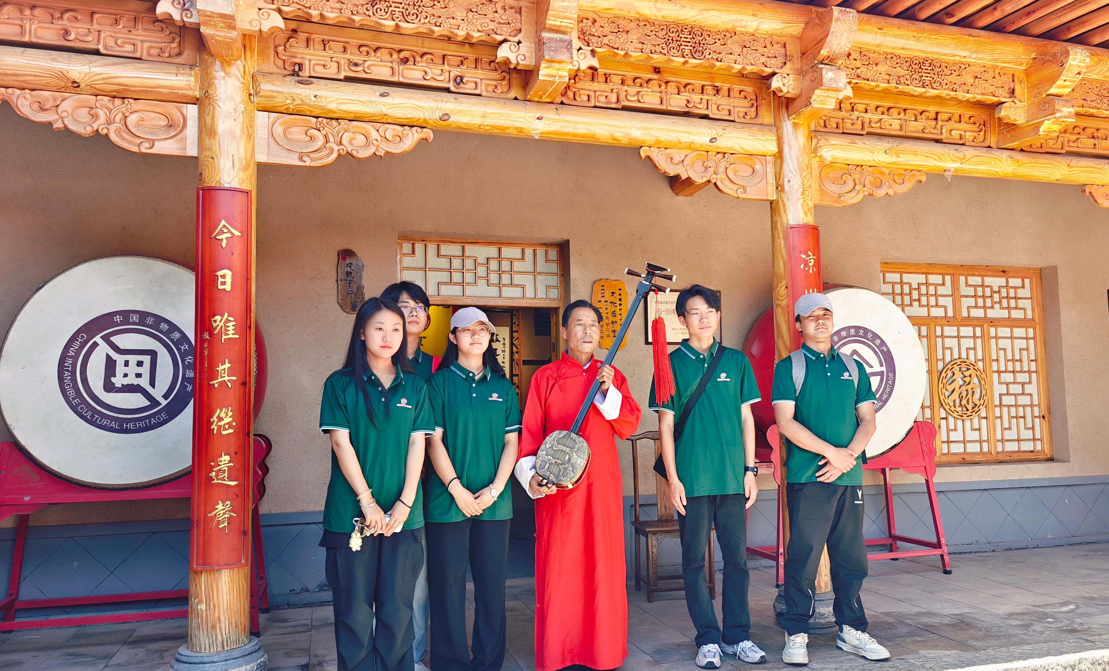 非遺民俗文化館當(dāng)天化身成為一座流動(dòng)的非遺課堂,實(shí)踐團(tuán)成員們圍坐在古樸的庭院中,聚精會(huì)神地聆聽當(dāng)?shù)刭Y深賢孝藝人董永虎老師深情演繹的經(jīng)典曲目。老藝人蒼勁而富有穿透力的嗓音,伴著三弦琴弦的顫動(dòng),將一段段蘊(yùn)含忠孝節(jié)義、勸人向善的古老故事娓娓道來。那飽經(jīng)歲月洗禮的曲調(diào),仿佛穿越時(shí)空,在青磚黛瓦間回蕩,讓在場的每一位學(xué)子都深深沉浸其中,體味著這門古老說唱藝術(shù)所承載的歷史重量與人文溫度。