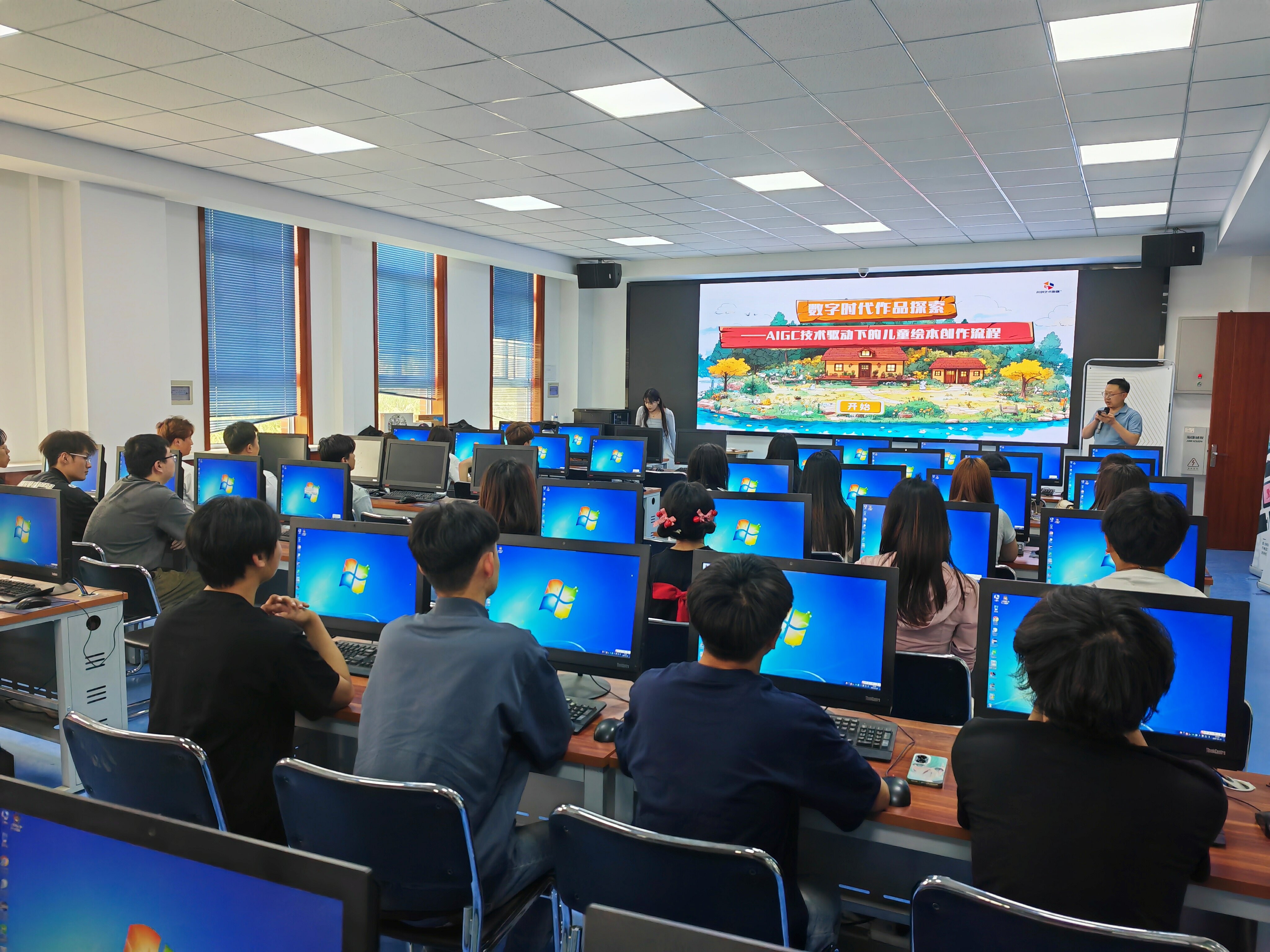 2025年5月28日下午,藝術(shù)與教育學院在篤行樓3樓10號機房舉辦了主題為“數(shù)字時代作品探索——AIGC技術(shù)驅(qū)動下的兒童繪本創(chuàng)作流程革新”的專題講座。本次講座特邀甘肅共創(chuàng)數(shù)媒科技有限公司資深數(shù)字藝術(shù)行業(yè)專家朱佩宇擔任主講。講座由副院長蘆小鵬主持。