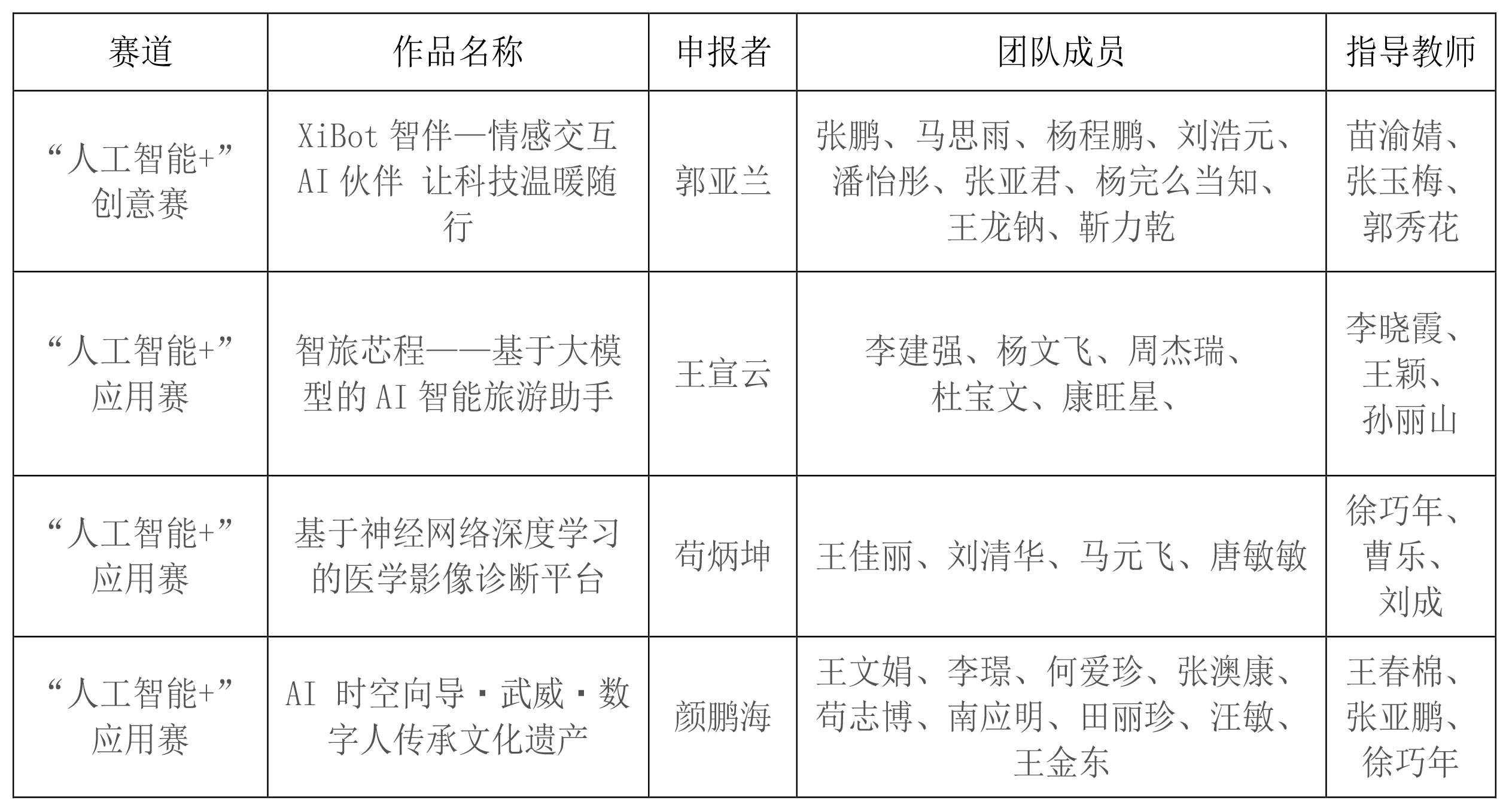 根據(jù)《挑戰(zhàn)杯|第十九屆“挑戰(zhàn)杯”中國移動全國大學(xué)生課外學(xué)術(shù)科技作品競賽來啦》推文,經(jīng)自主申報,校團委審核,擬推薦以下作品參加第十九屆“挑戰(zhàn)杯”全國大學(xué)生課外學(xué)術(shù)科技作品競賽“人工智能+”專項賽,現(xiàn)予以公示。