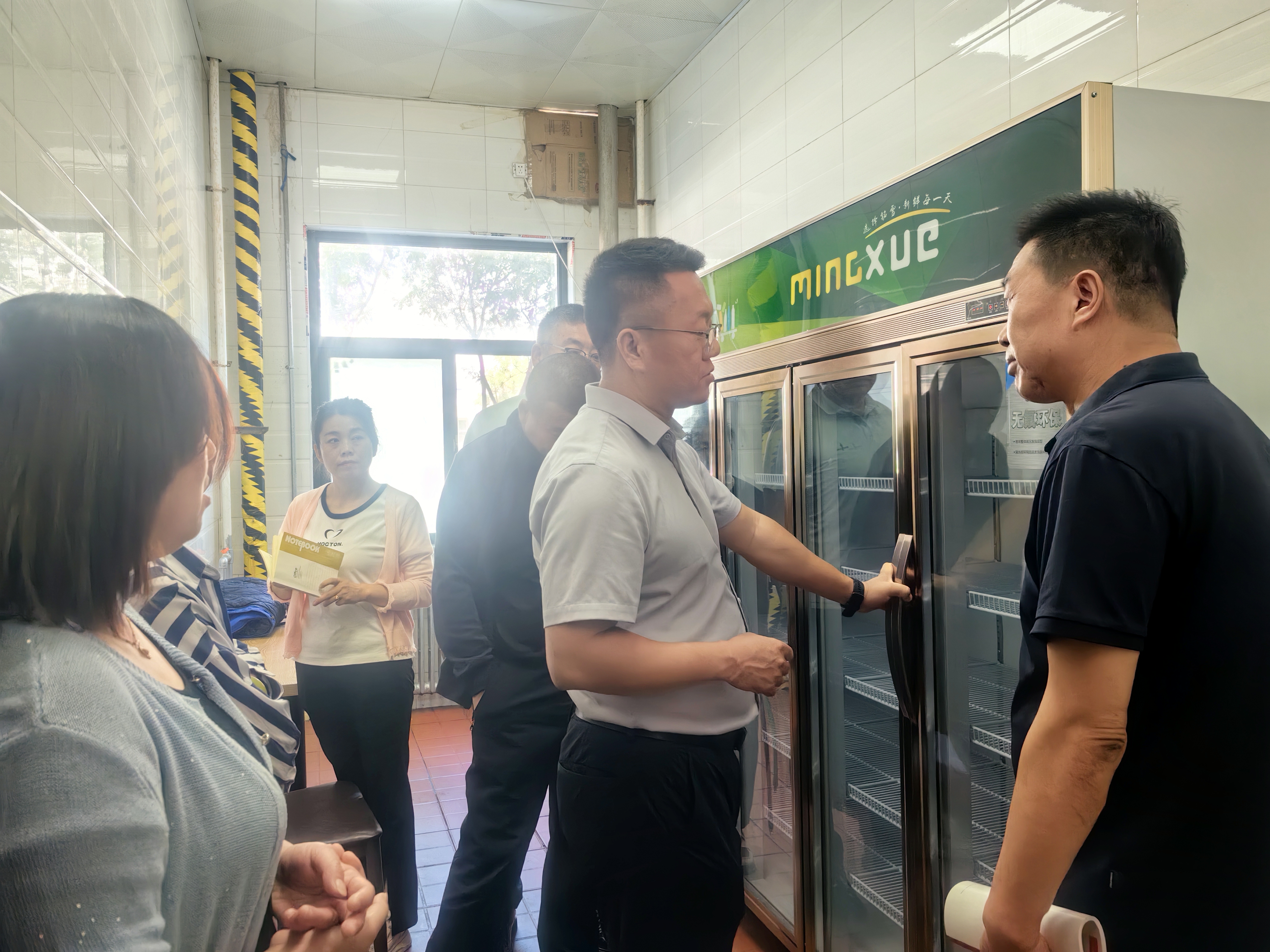 在食堂現(xiàn)場檢查指導中,劉楠對制度上墻、排氣扇紗網(wǎng)孔洞大小、留樣操作、紫外線消毒設備、天花板地溝縫隙等方面進行細心指導,管理人員跟隨做了詳細記錄,為今后食堂日常監(jiān)管提供了很好的參考。
