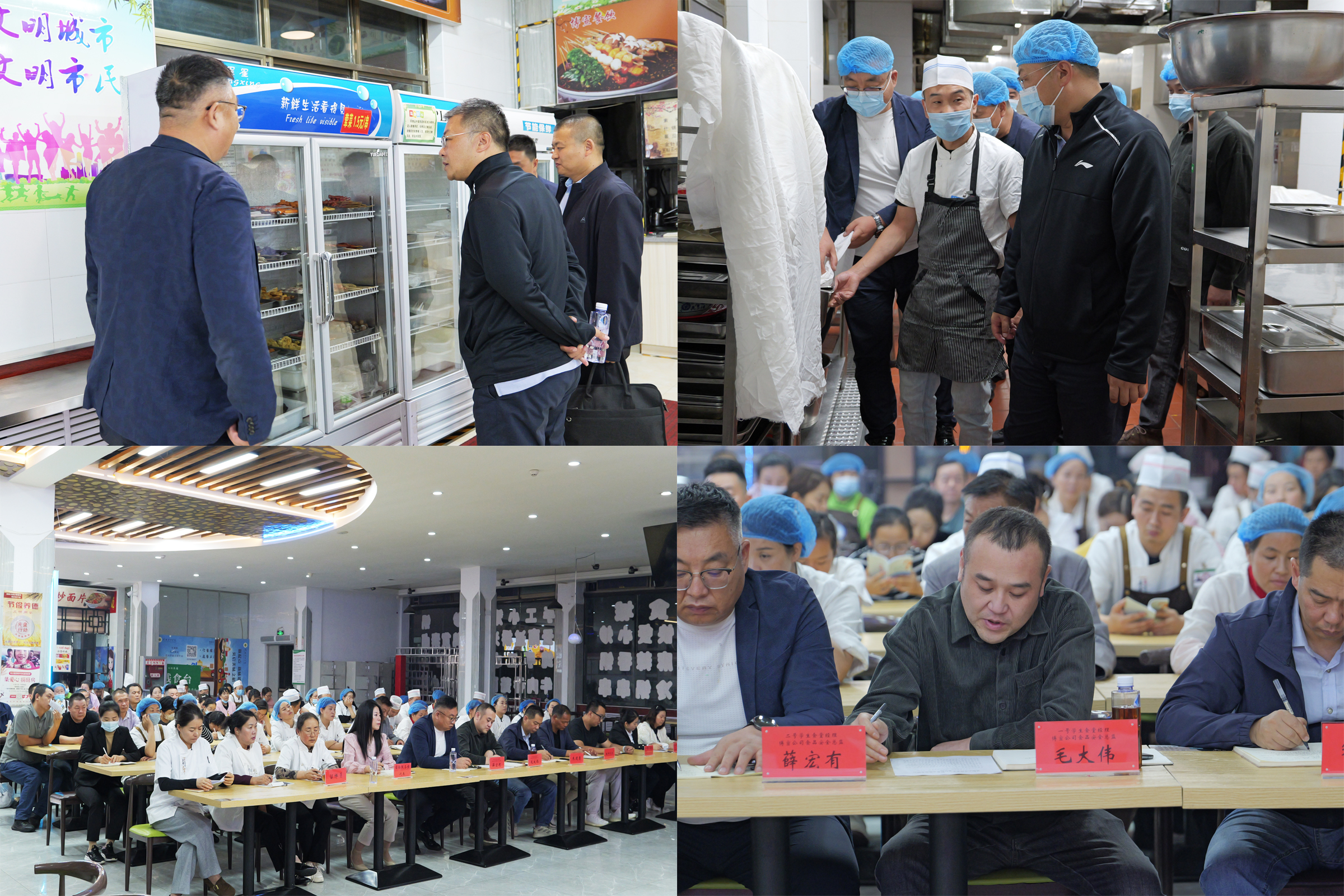 會后,李海軍和食品安全管理人員實地檢查了餐具清洗區(qū)、食品加工區(qū)、留樣區(qū)等重點區(qū)域,詳細了解了食材儲存、加工流程、菜品留樣、餐具消毒等環(huán)節(jié)及食堂整體衛(wèi)生狀況。