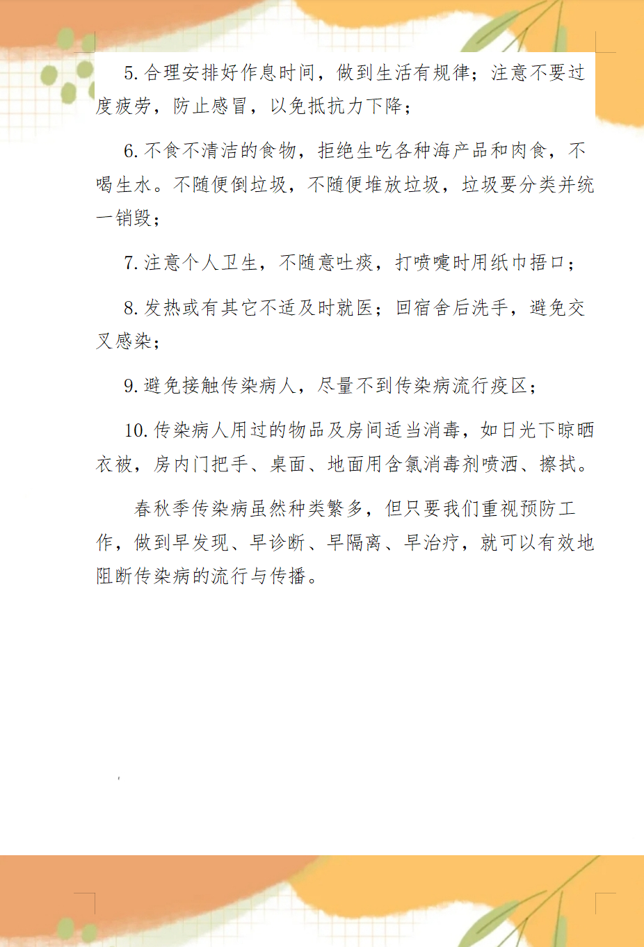 春秋季其他類傳染病預(yù)防知識(shí)